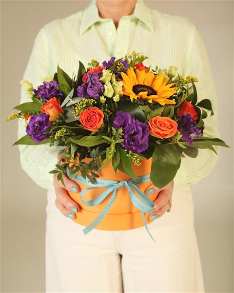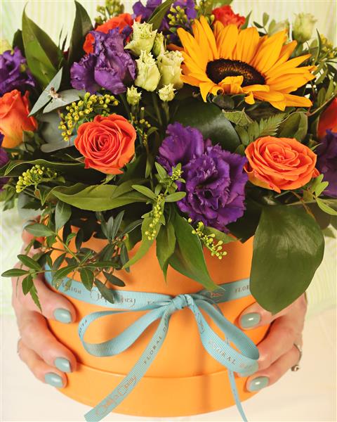 Your new favourite mood b booster. A vibrant mix of cheerful colours, all tucked into a stylish hatbox, (no vase needed!)