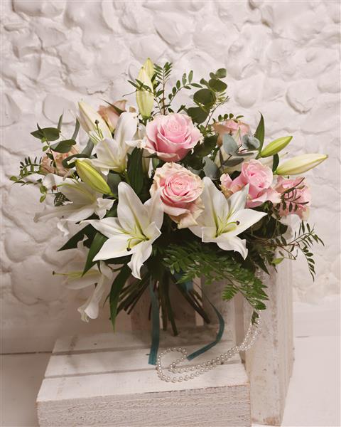Soft pink roses meet pure white lilies in this stunning arrangement. Premium quality, hand-delivered to make the day unforgettable.