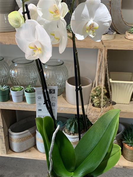 This multi stemmed Phalaenopsis. the most beautiful blooms which give off a subtle exotic scent. The Orchid is presented in a decorative container.