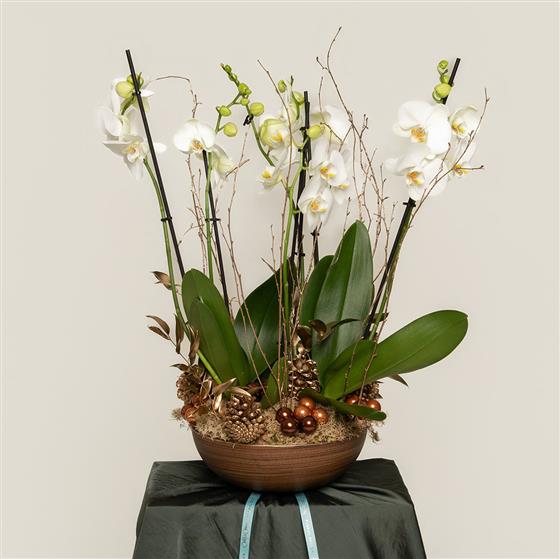 There is a unique peace found in the heart of winter—the soft light of a late afternoon, the quiet comfort of home. Our Bronze Bowl Phalaenopsis arrangement is designed to capture that very feeling.