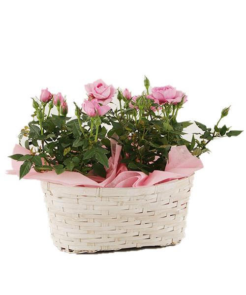 Large headed Pink roses presented in a hand made wicker basket, perfect.