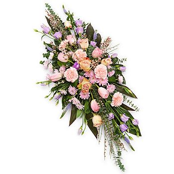 A pretty pink and mauve double ended spray, featuring pink Roses, Tulips, Genista and Carnations with lavender Veronica and Lisianthus.