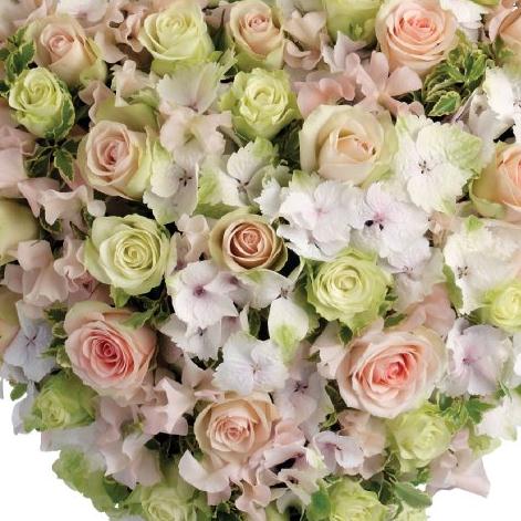 A soft delicate mix of pastel flowers including roses create this beautiful tribute to a loved one. Standard size 12".
